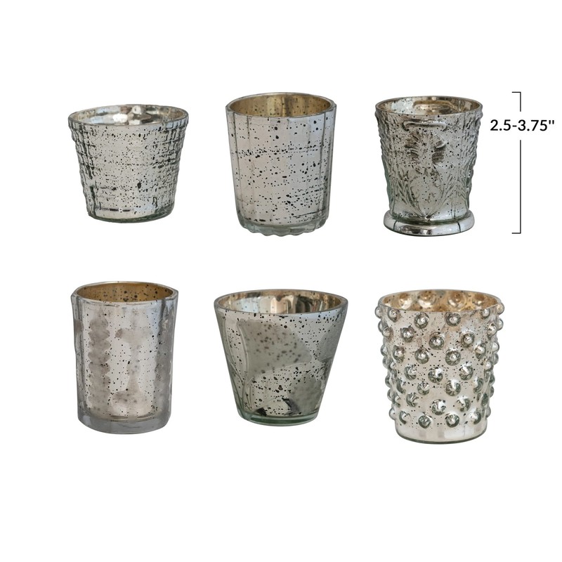 Creative Co-Op 2-1/2"H - 3-3/4"H Mercury Glass Votive Holders, Antique Silver Finish, 6 Styles, Set of 6