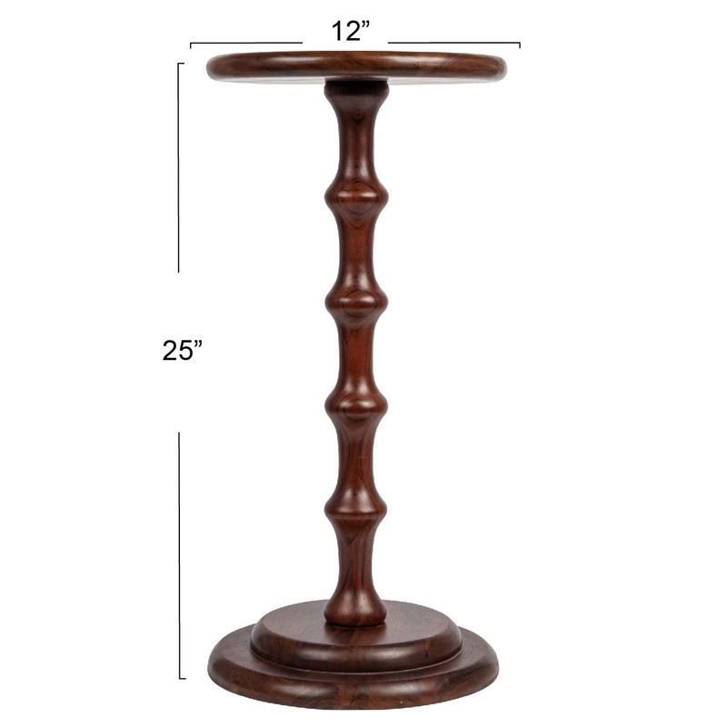 Creative Co-Op Ergo Pedestal Cocktail Side Table, Dark Chestnut