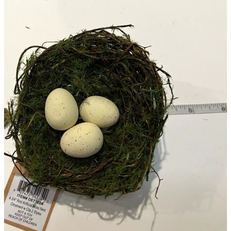 Creative Co-Op Faux Bird Nest with 3 Eggs Clip On 4 1/2 - 5" Diameter