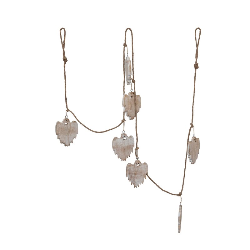 Creative Co-Op Jute and Mango Wood Ghost Garland, White