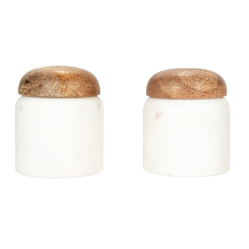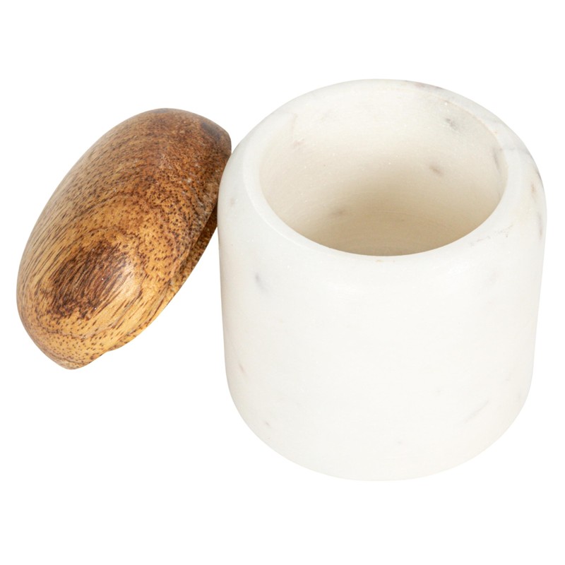 Creative Co-Op Marble and Mango Wood Pinch Pot with Lid, White and Natural