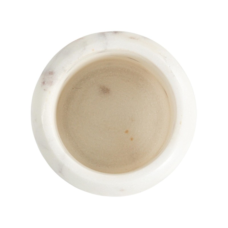 • This modern, Scandinavian-style pinch pot canister features naturally variating marble construction topped with a rounded wood lid