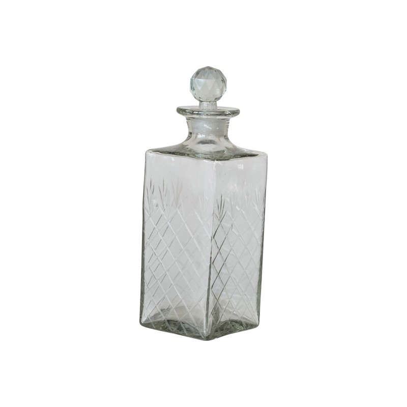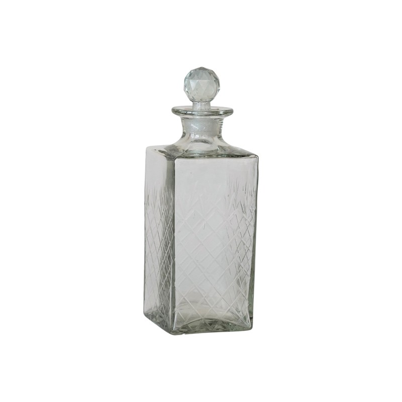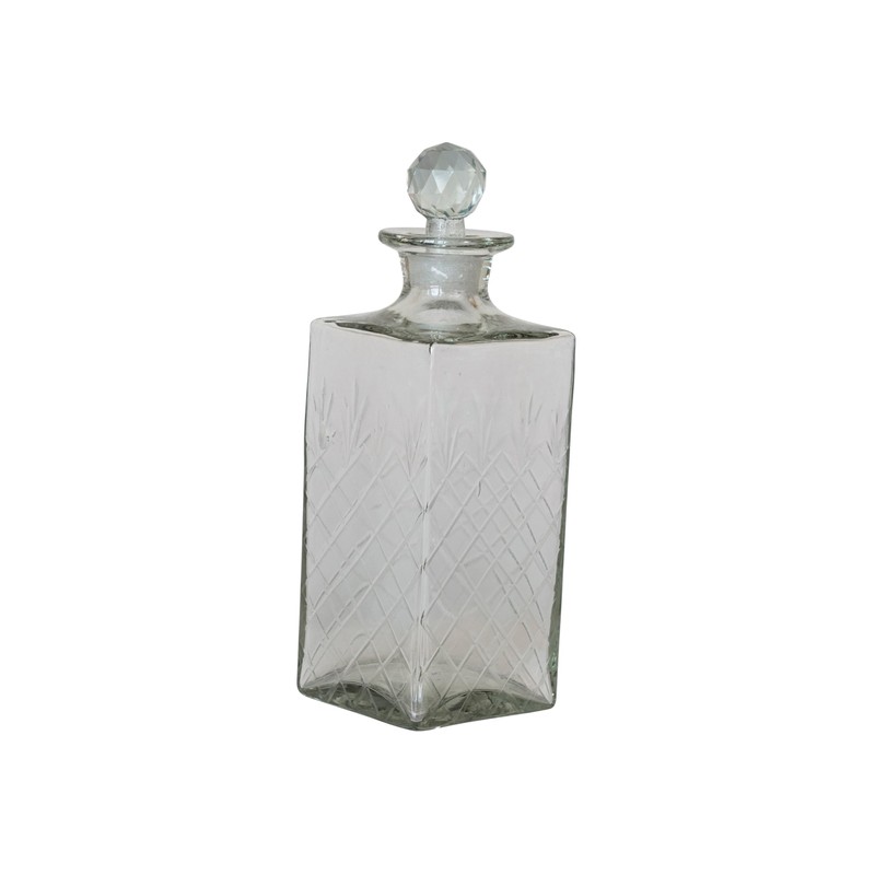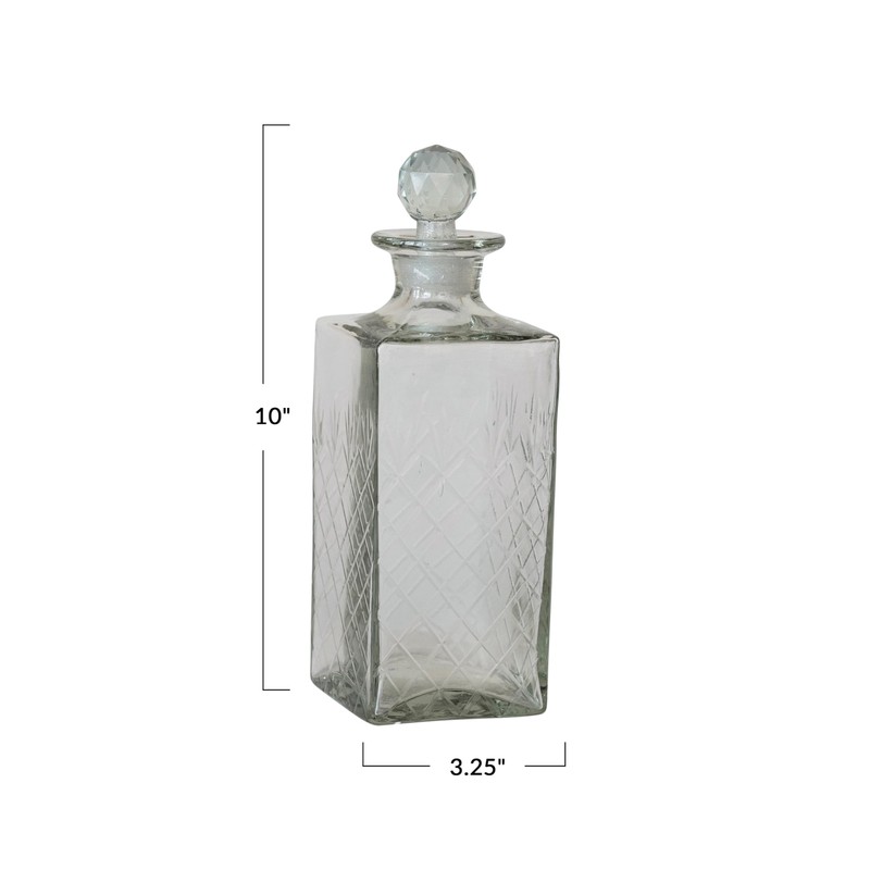 Creative Co-Op Reclaimed Etched Square Glass Decanter, Clear