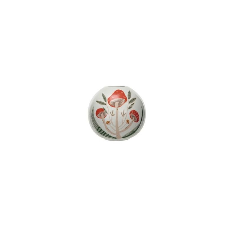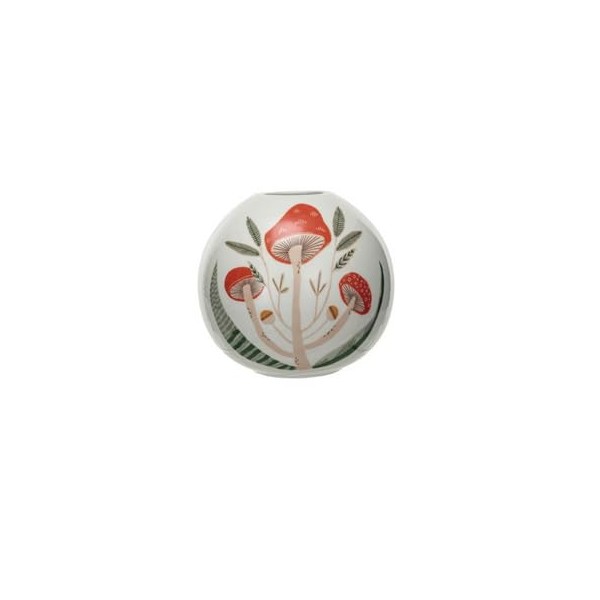 Creative Co-Op Round Stoneware Vase with Mushrooms, Multicolor