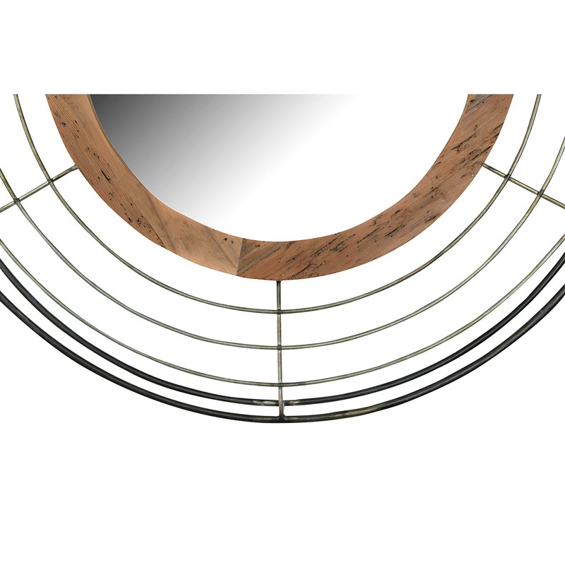 Creative Co-op Round Wall Wood Frame and Metal Wire Surround Mirror, Iron
