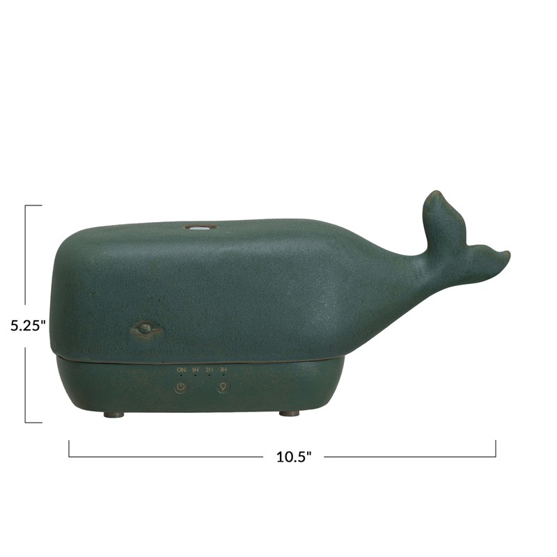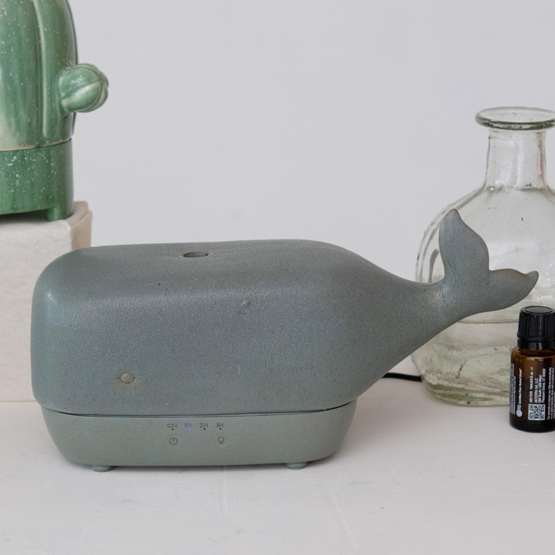 Creative Co-Op Stoneware Whale Oil Diffuser with Timer, Grey