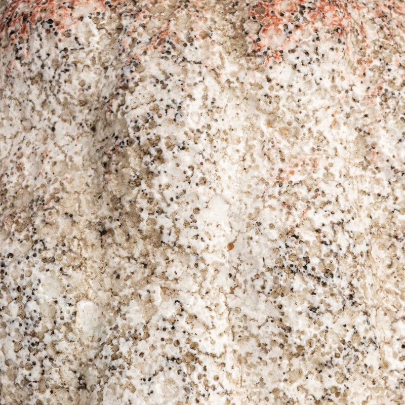 • A set of two round terra-cotta vases that have a raised rectangles pattern and a distressed finish in cream color that adds a touch of rustic and cozy charm to any space