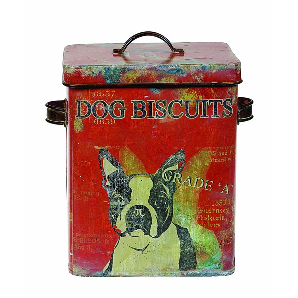 Creative Co-Op Vintage Tin Boston Terrier Dog Biscuit Container