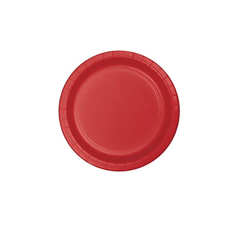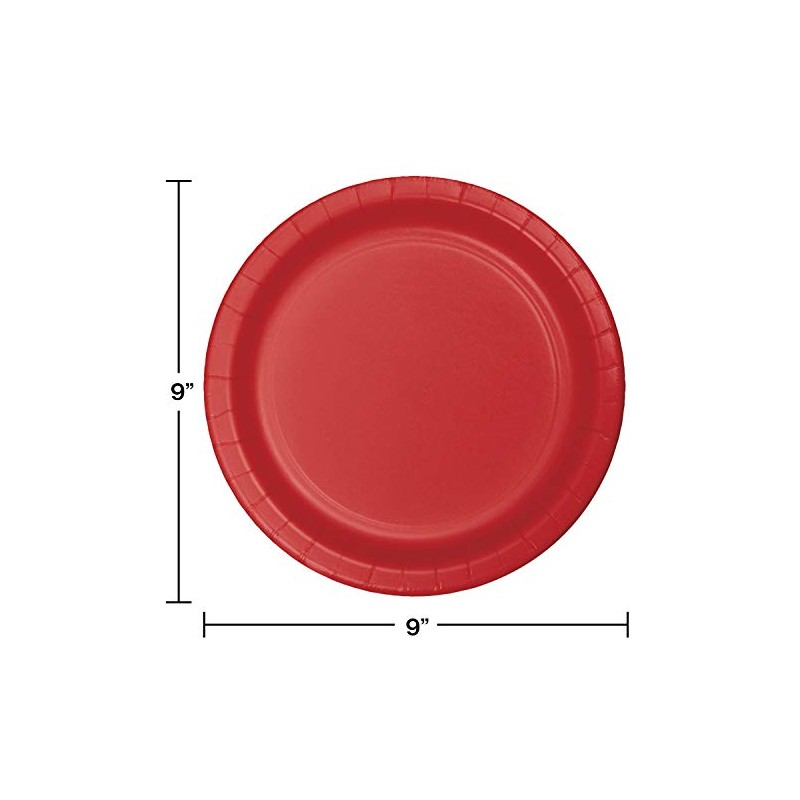 - 12 Packages of 8 paper dinner plates in Classic Red