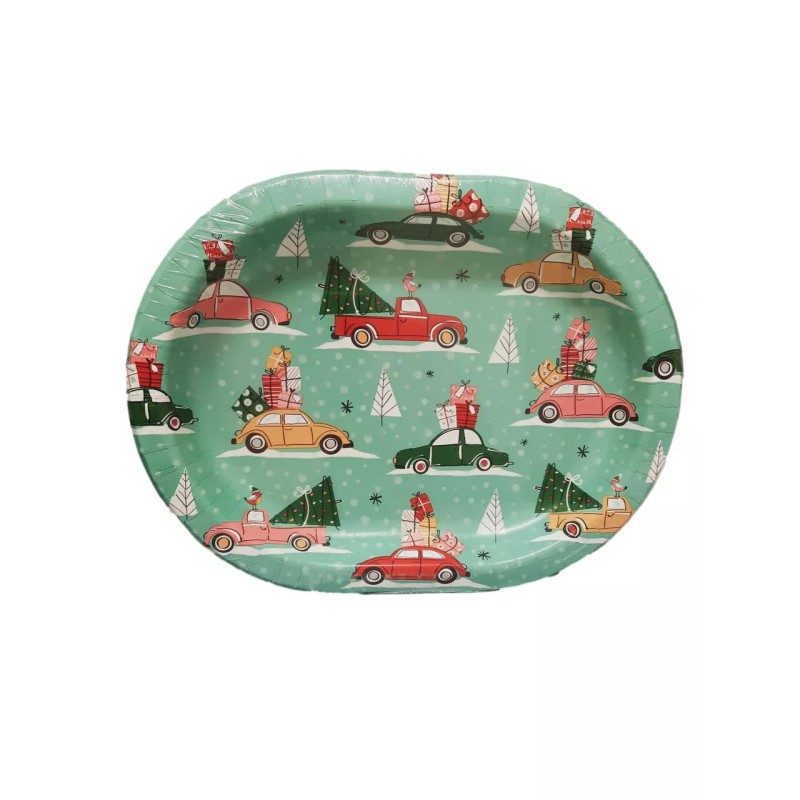 Creative Converting Christmas Cars Trucks 8 Ct Oval Banquet Platters Plates 10 x 12