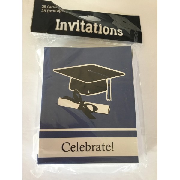 Creative Converting School Colors Graduation Party Invites - 25 pack, true blue