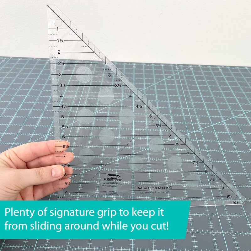 Creative Grids Folded Corner Clipper XL Quilt Tool – CGRFCCXL – Made in USA, 10in x 10in, Non-Slip Grip Acrylic Quilting, Sewing, Crafting, Patchwork Ruler & Template