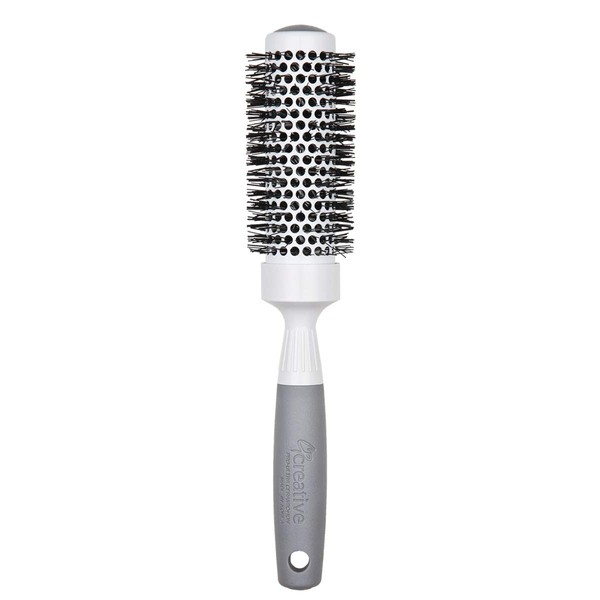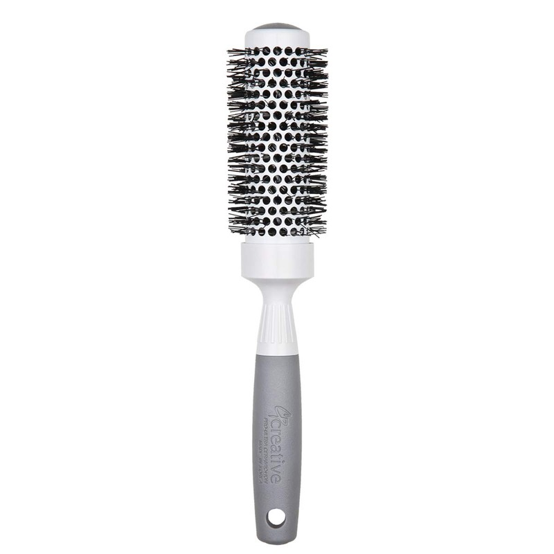 Creative Hair Brushes Pro Thermal Hair Brush CR 131-PRO is a ceramic Ionic hair brush that heats up quickly and evenly and glides through hair easily. The barrel has vents on them that allow hot air to pass through allowing for a fast blow-out. The ceramic base, heat's up giving you frizz-free hair with a silky smooth shiny finish. All hair types can benefit from the ultra thermal pro ceramic Ionic hair brush will help you achieve, volume smoothness and straight hair. The lightness of the hair brush is important if you are a stylist. The rubber handle helps you have a better grip.