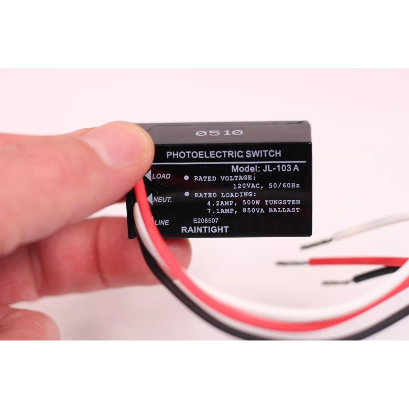 - Dimension 1.12" x .84" x 2.05" 5/8"-18 thread nipple Nipple length 20mm (3/4") 120VAC, 50/60HZ 4.2AMP, 500W Tungsten 7.1AMP, 850VA Ballast On-Off Levels: 10~20Lx On(Dusk); 30~60Lx Off(Dawn)