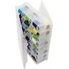 CREATIVE OPTIONS-Double-Sided Thread Organizer. Perfect for storing spools (up to 3x1-1/2 inches in size), floss, bobbins, and small embellishments. The organizer has two hinged doors so access is easy from either side and also features 46 fixed compartments, a carry handle for portability, and is made of transparent, durable molded plastic. This organizer measures 14x10-1/2x3 inches. Made in USA.