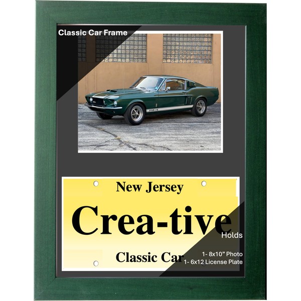 Creative Picture Frames 8x10 Candy Green Classic Car Frame with 6x12 License Plate Frame Display with Black Mat