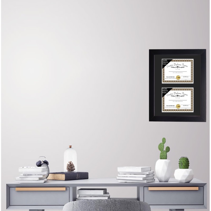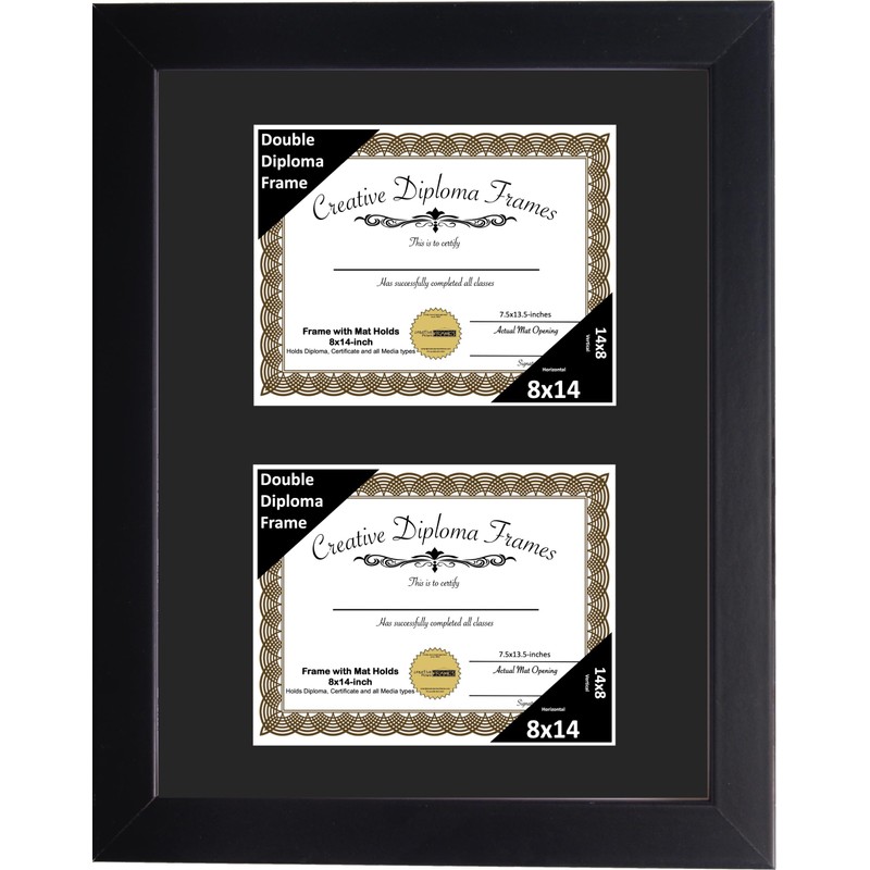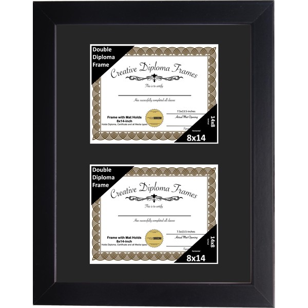 Creative Picture Frames Dual 8x14-inch Manhattan Black Double Diploma Frame | Black Mat holds two 8 by 14-inch Documents in 16x20 Frame with Installed Hardware