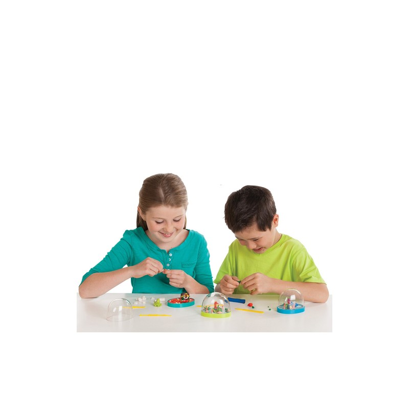 Craft 3 enchanted seascapes for some underwater friends using the included tools and modeling clay in blue, yellow, red and white. You can even mix colours together to create new colours. Create fish, coral, seaweed and other seaworthy accessories to keep your miniature mermaid, seahorse and friendly octopus feeling right at home under the sea! Also includes a handy funnel for filling, glitter and 3 display trays. Child-safe plastic globes measure 7.25cm w x 9.1cm h x 6.9cm l.