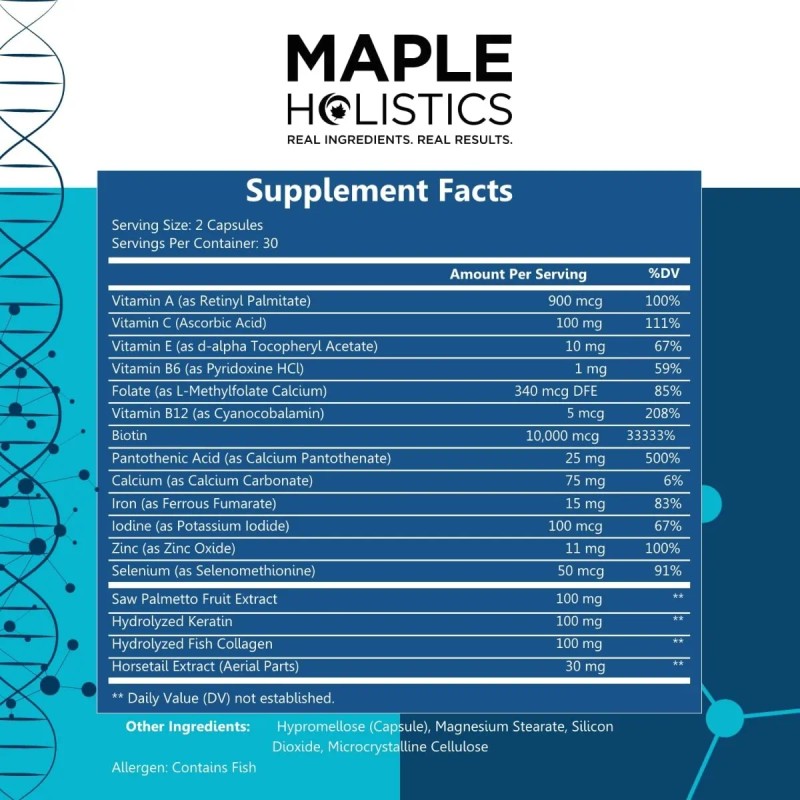 Maple Biotina – Suplemento para Cabello, Piel y Uñas 💊💇‍♀️ | Estimula el crecimiento del cabello, fortalece desde la raíz y mejora el brillo y la salud capilar. ¡Tu aliada natural contra la caída! 🌿✨