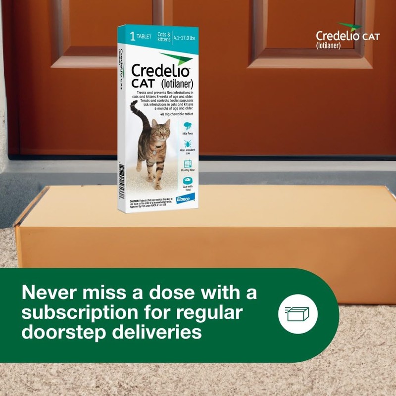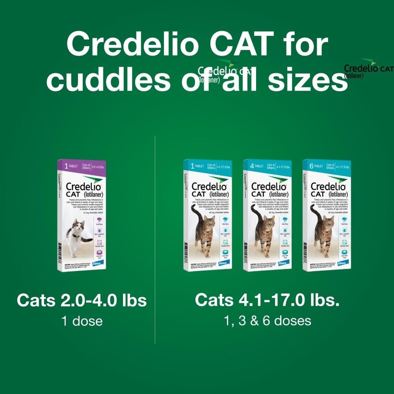 - Easy to give; Credelio CAT was successfully given by over 99% of cat owners (Chappell K, Paarlberg T, Seewald W, et al. A randomized, controlled field study to assess the efficacy and safety of lotilaner flavored chewable tablets (Credelio CAT) in eliminating fleas in client-owned cats in the USA. Parasite Vector. 2021;14:127.)