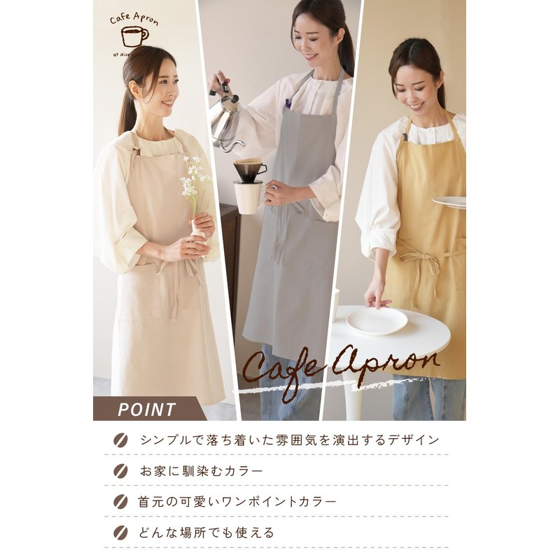 • (Stylish and Cute Cafe Style Apron) This cafe style apron has a simple design and stylish colors. It can be used for various purposes such as cooking and washing at home, as gardening, ceramics, restaurants, and floral shops. Recommended for preschools, kindergartens, and schools. There are pockets on the left and right to hold handkerchiefs and notes