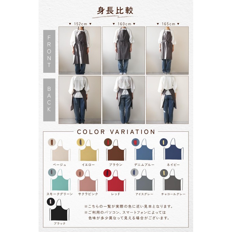 • Size: One size fits most (Length: 33.1 inches (84 cm), Shoulder Width: 10.6 inches (27 cm), Body Width: 36.2 inches (92 cm), Cord Length: 33.9 inches (86 cm), Cord Width: 0.6 inches (1.5 cm), Material: 97% cotton, 3% polyurethane. *As our staff measures, there may be slight errors. Please acknowledge