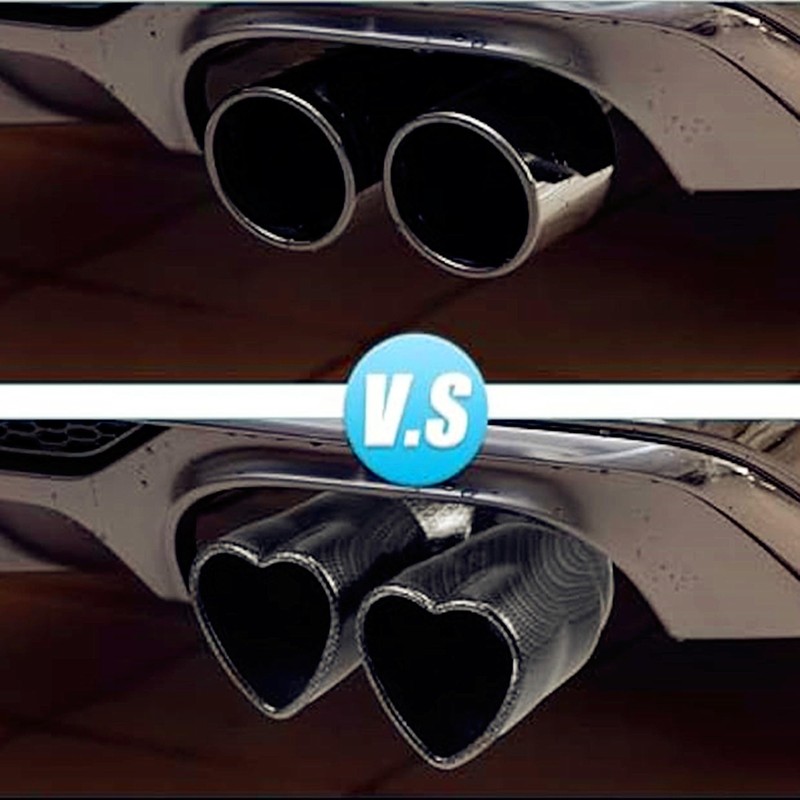 CREHNIL Carbon Fiber Heart Shaped 2.5 Exhaust Tip Bending Muffler Kit 2.25 Inlet System Car Mods Black (Dual exhaust)