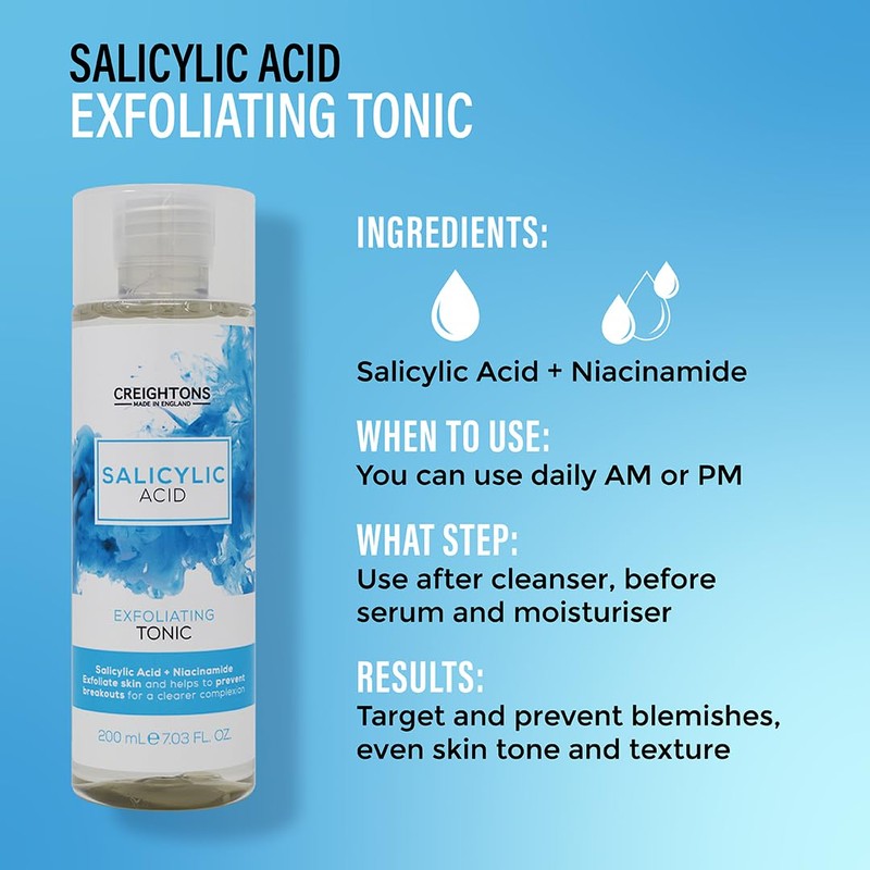 Creightons Creightons Salicylic Acid Exfoliating Tonic 200ml C Reduces Blemishes, Uneven Skin Tone & Texture | 1% Salicylic Acid & 1% Niacinamide | Dermatologically Tested, Vegan & Cruelty-Free