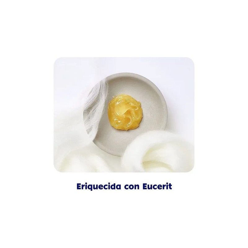 - Su textura suave, calmante e hidratante deja la piel suave y flexible. Enriquecida con Eucerit® relacionado con la piel para una hidratación profunda y duradera.