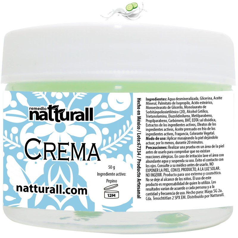 Crema de Pepino Hifratante Facial para la Cara para Contorno de Ojos Natturall 50 g
