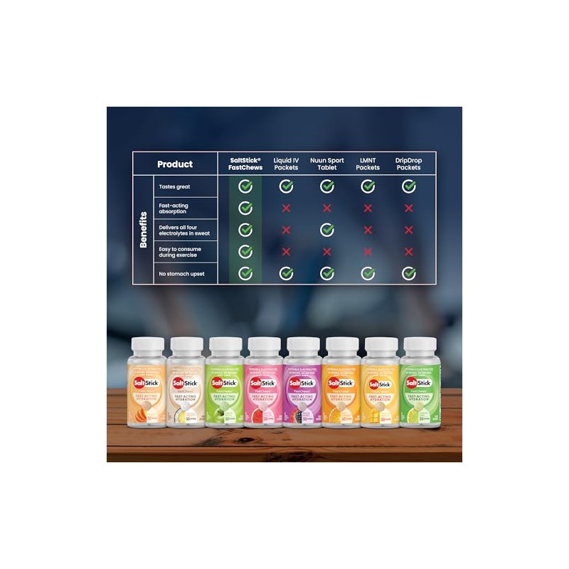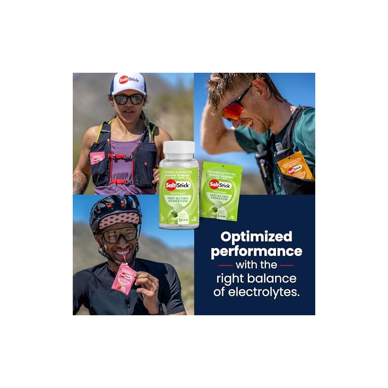 🌟 ⭐ Saltstick- Tabletas masticables de electrolitos de manzana verde, tabletas de sal para corredores, tabletas masticables de electrolitos para hidratación, 60 unidades ⭐ 🌟