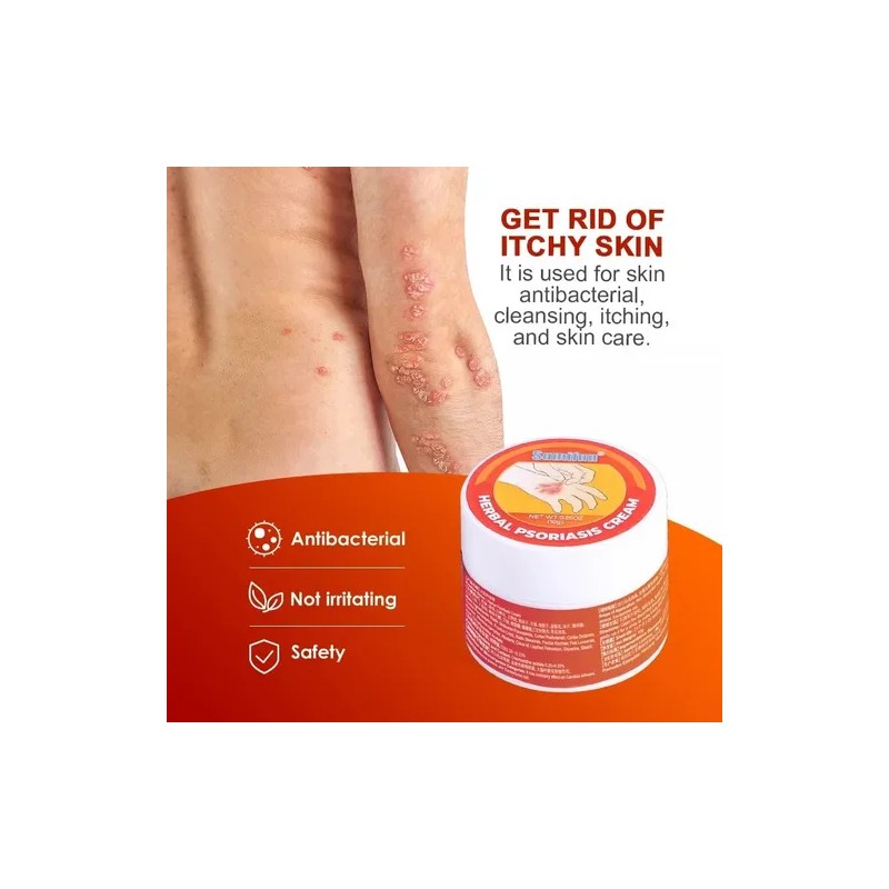 La mezcla de hierbas naturales penetra la piel y alivian muchos síntomas de la psoriasis, incluyendo picazón, descamación, enrojecimiento de la piel, nutritivo, hidratante y reparador de la piel