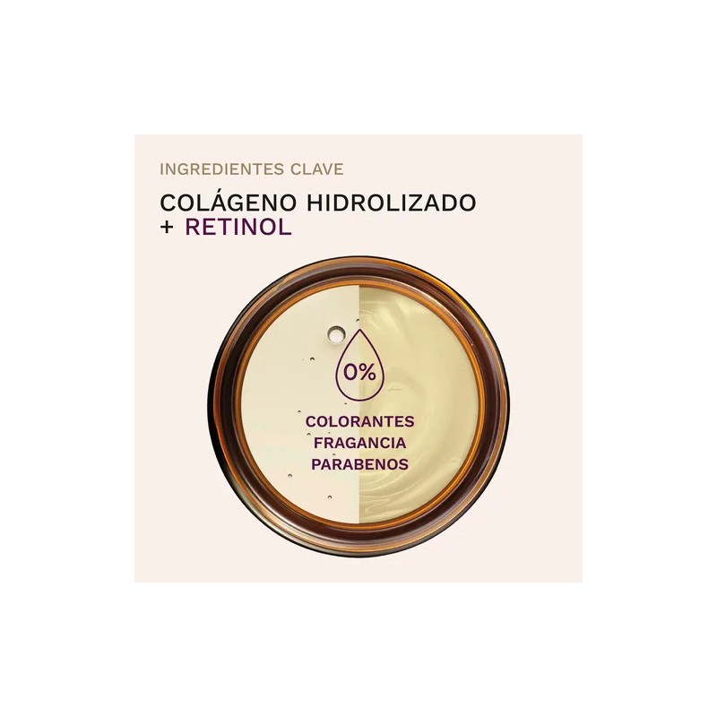 >> La formula para una piel joven - Juntos, el Retinol y el Colágeno Hidrolizado, estimulan la formación de Colágeno, humectando tu piel y adicional, recuperan su firmeza, textura, tono y elasticidad.