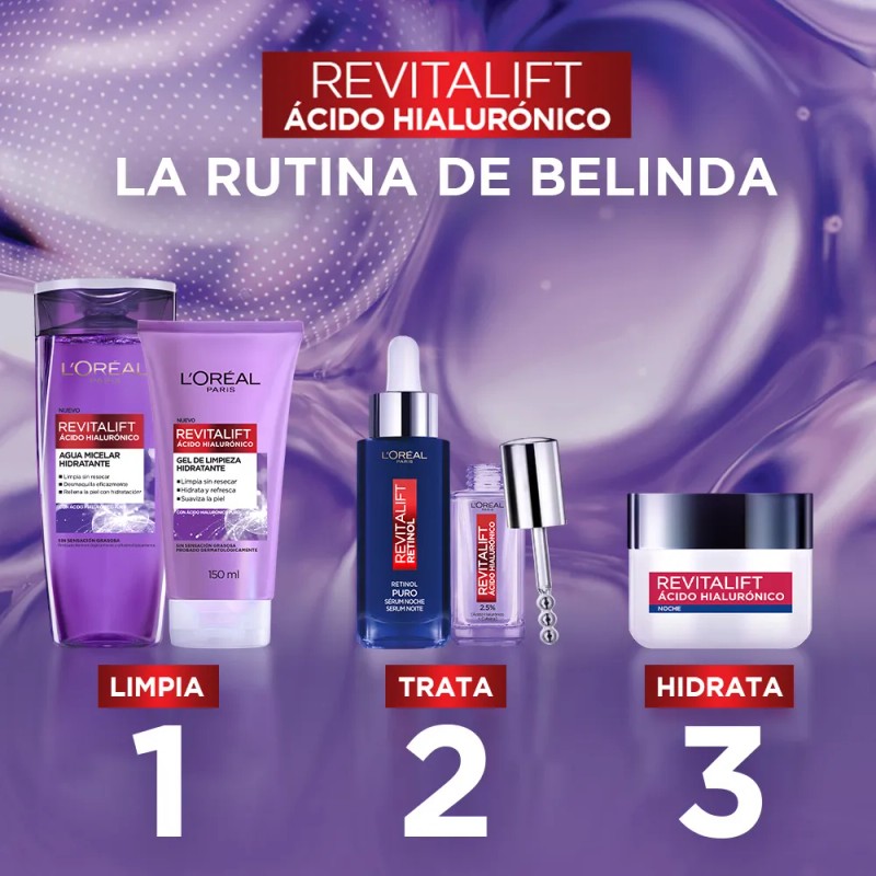 Esta línea de Revitalift incluye ácido hialurónico puro, un ingrediente esencial que hidrata y rellena la piel, ayudando a restaurar el volumen facial.