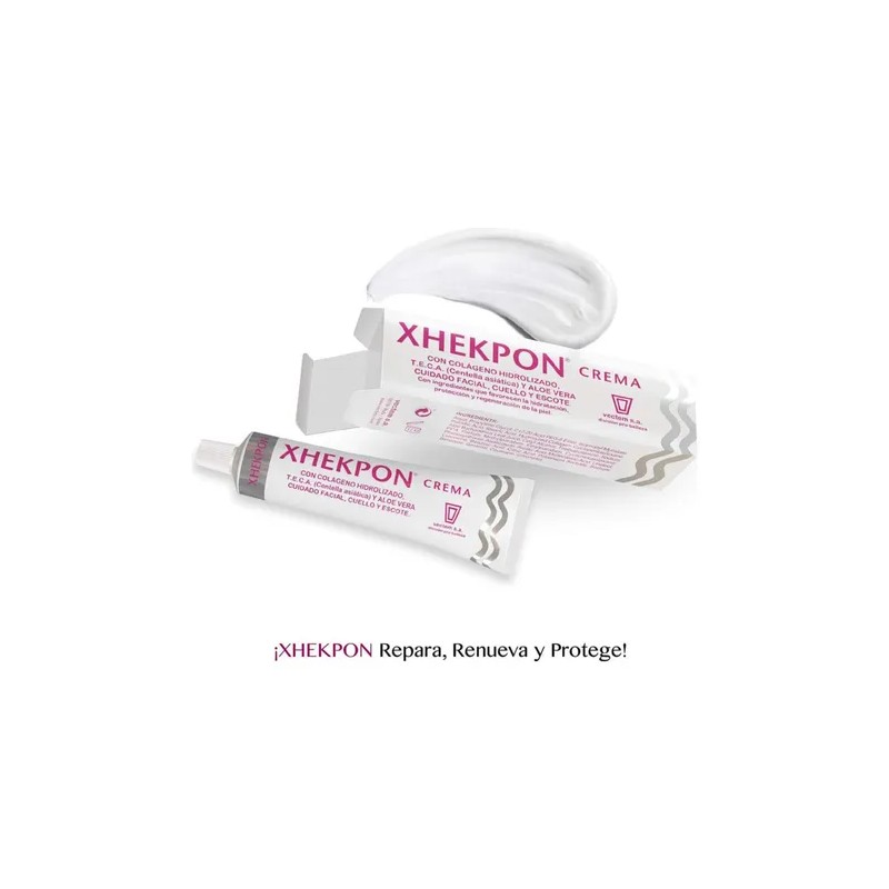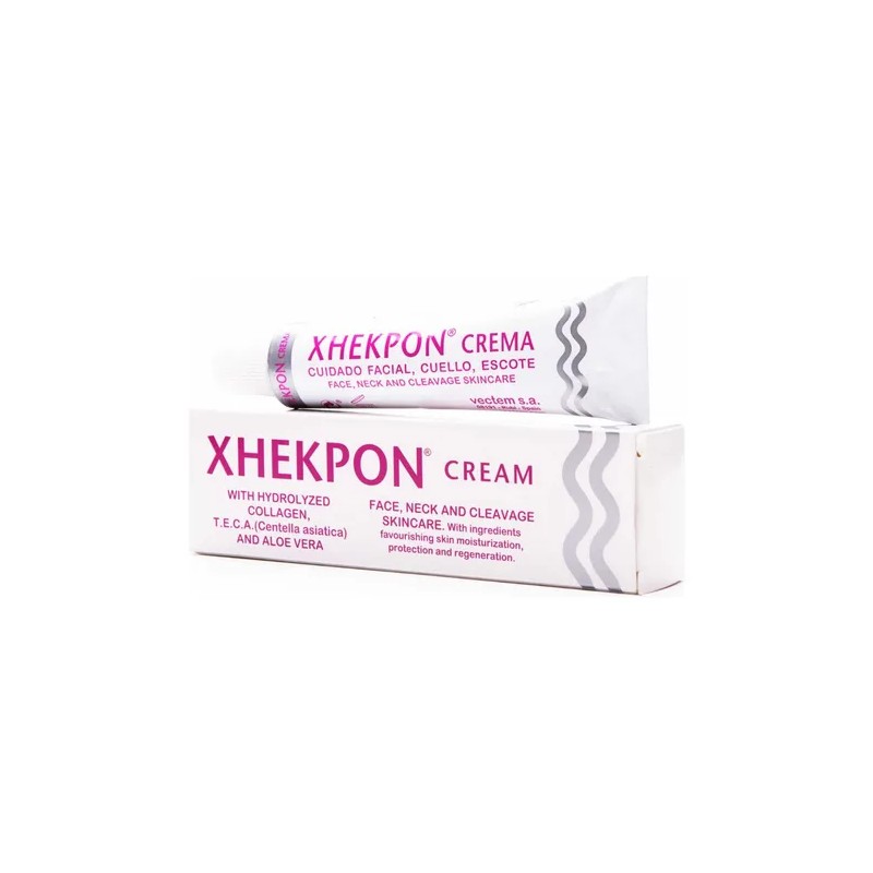 Xhekpon® Crema ayuda a combatir las arrugas, proporciona al cutis una apariencia cuidada, fina y luminosa, favorece la recuperación de pieles enrojecidas o irritadas y a su vez ayuda a proteger la piel en la intemperie y en ambientes polucionados.