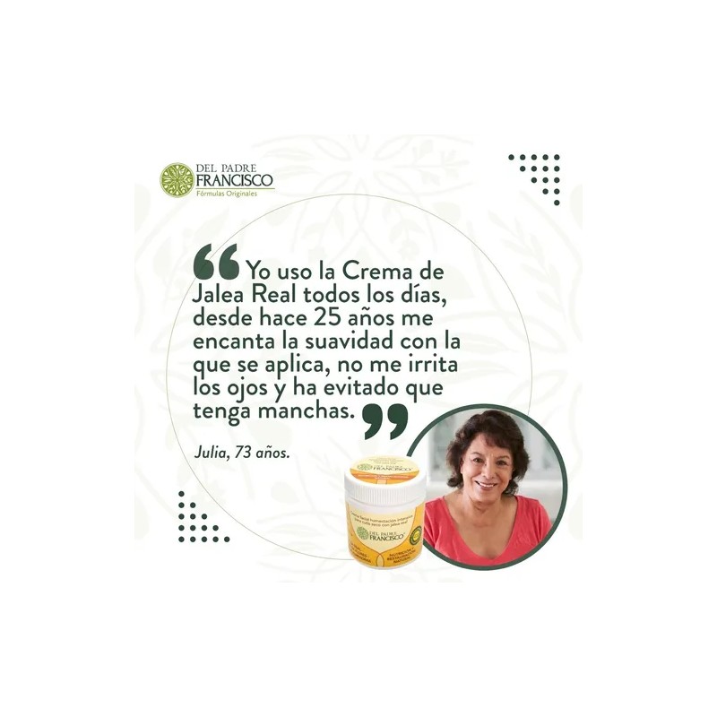 Humectante para rostro, cuello y manos, gracias a las propiedades regeneradoras de la jalea real provee nutrición y cuidado intensivo para cutis seco y sensible.