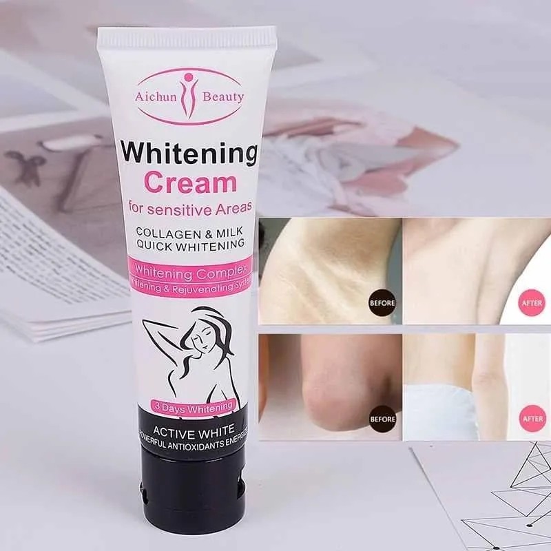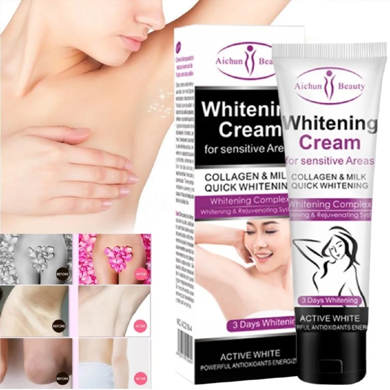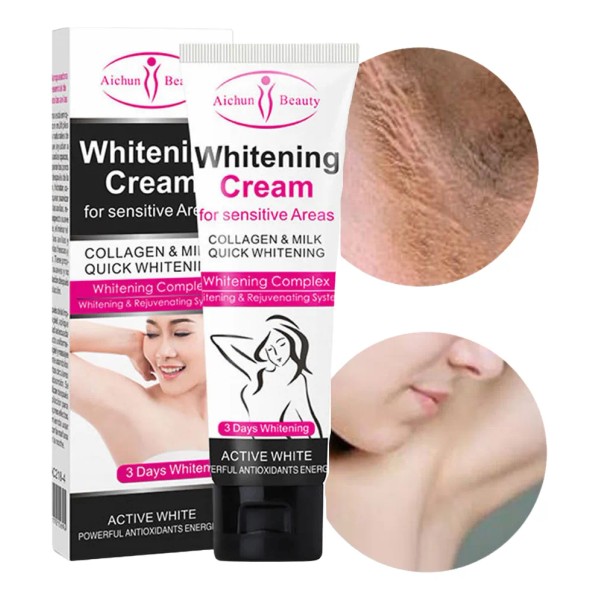 Crema original especializada en aclarar/blanquear zonas sensibles, tales como: axilas, área del bikini, entre pierna, detrás del cuello, etc.