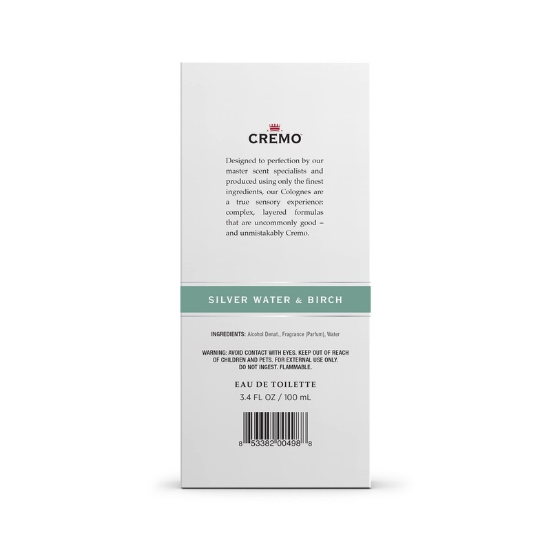 | Color: | Cremo Silver Water & Birch Cologne Spray, A Crisp Scent with Notes of Forest Moss, Lavender and White Birch, 3.4 Oz |