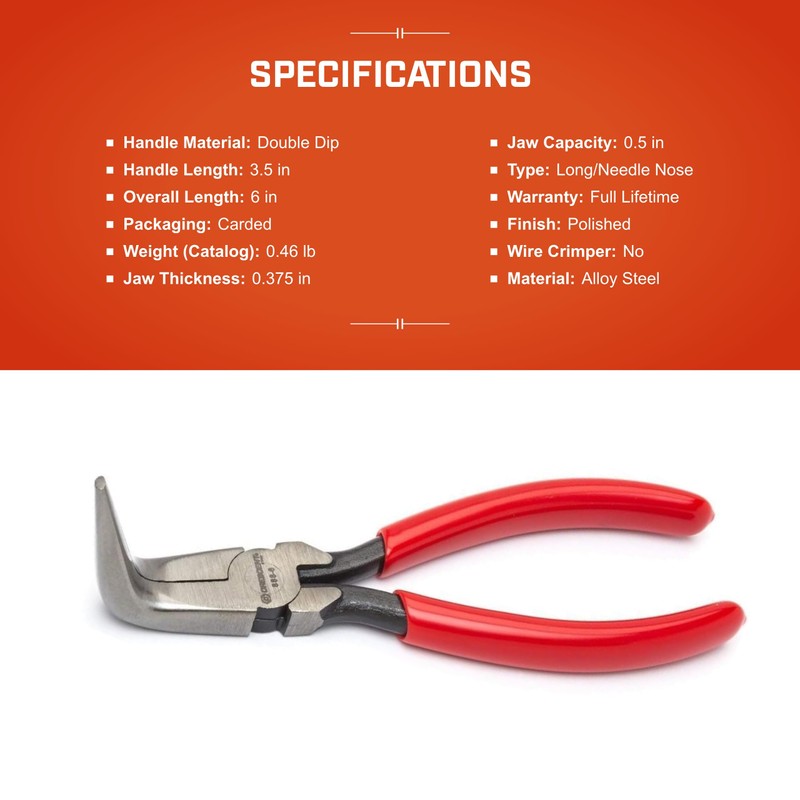 Crescent 8886CVN 6" Curved Needle Nose Solid Joint Pliers, Cushion Grip