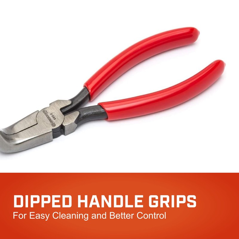 - Thin bent nose, tempered tips are made to bend slightly when gripping, returning to normal when pressure is released
