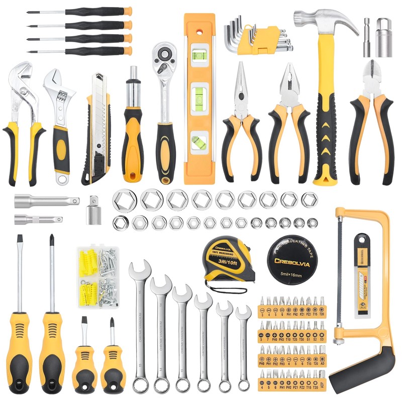 CRESOLVIA 199 Piece Home Tool Set Basic Household Auto Repair Tool Set with Plastic Toolbox Storage Case Pliers Wrench Combination General Hand Tool Kit for Men Women Home DIY Car Maintenance Toolbox