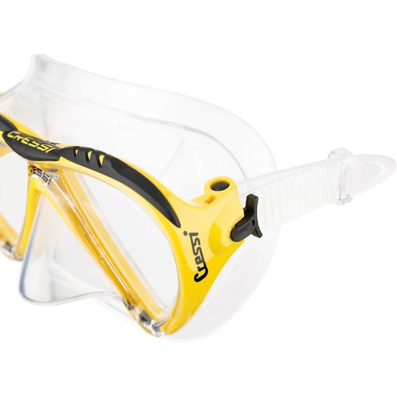 - Features inclined and inverted tear-drop lenses for improving downward visibility, a Cressi's patented design (US 6272693). Perfect for check the BCD and the instruments while scuba diving.