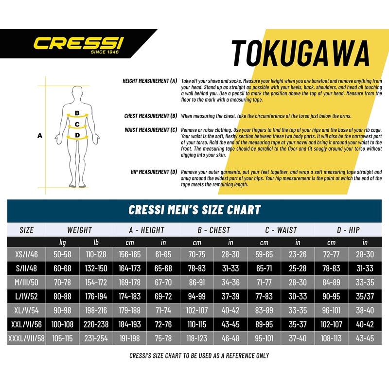 - Cressi prides itself on its excellent wet suit cuts. The Tokugawa is no exception. Its anatomical design cuts offer a comfortable form-fitted feel. The suit design is pre-shaped arms and legs that improve flexibility and the ease of swimming.