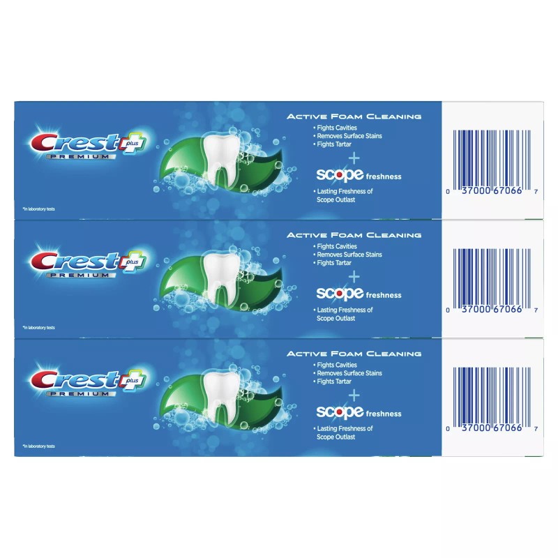 Crest Premium Plus Scope Outlat Toothpaste Long Lasting Mint Flavor 5.2 oz 3Pack
