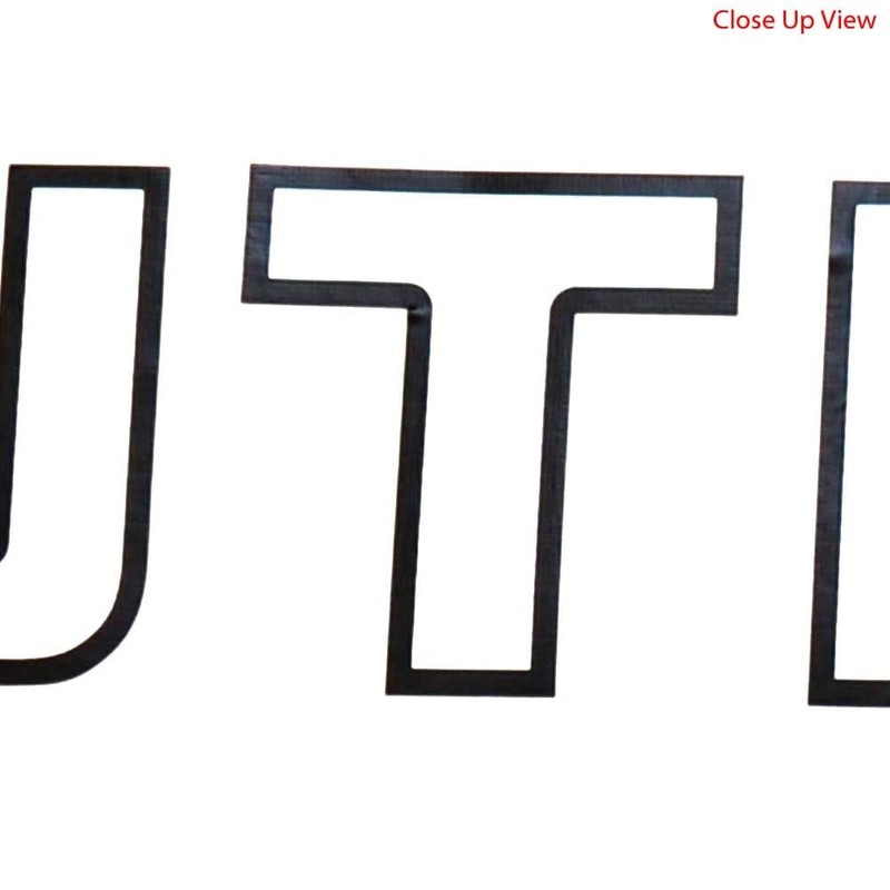 This decal is constructed out of white and black marine grade vinyl with an adhesive backing. Measures approximately 25 5/8" W x 2" H overall.