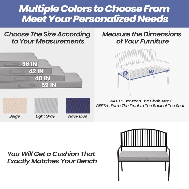 - 【Size Specification】:1 piece bench cushion for outdoor furniture with the seat measuring 36"W x 14"D x 3"T is included. (Kindly note: Please measure the seating area of your furniture to choose the right size.)