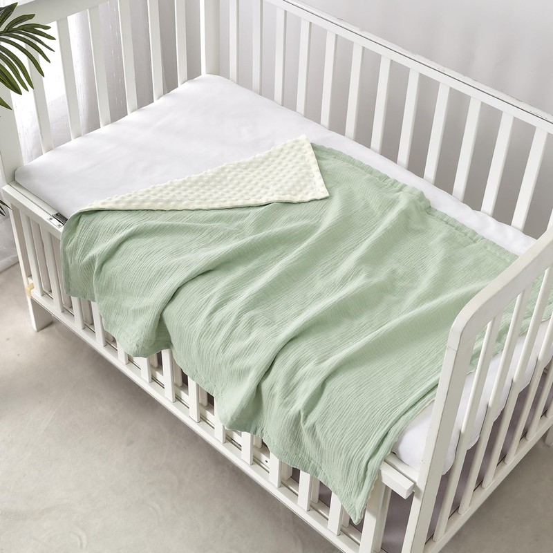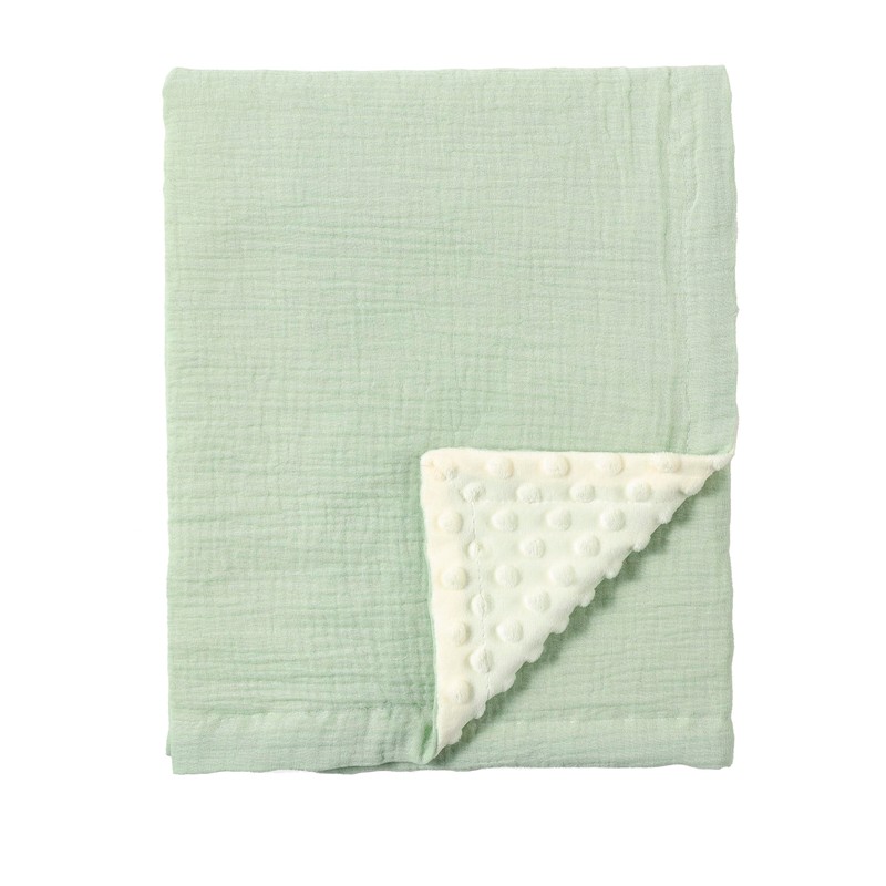 CREVENT 30''X40'' Organic Muslin Cotton Baby Blanket for Newborns, Soft Mink Backing, Essential for Baby Shower Birthday Gift - Green 75X100cm