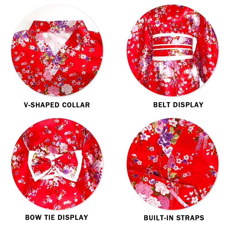 CRFASIBE Women's Long Kimono Robe, Japanese Sakura Print Kimono Dressing Gowns, Japanese Cosplay Dress Costume Set with Accessories, Pack of 5, red, Unit size