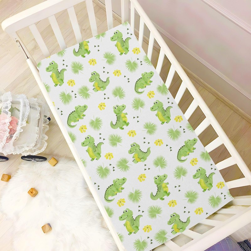 Crib Sheets for Boys Crocodiles Alligators Palm Leaves Toddler Baby Girl Sheets for Crib,Neutral Mini Crib Nursery Mattress Sheets Fitted,Crib Mattress Soft & Breathable 52 * 28 * 9In
