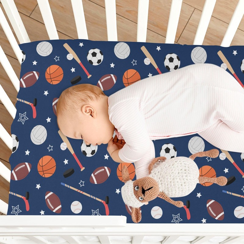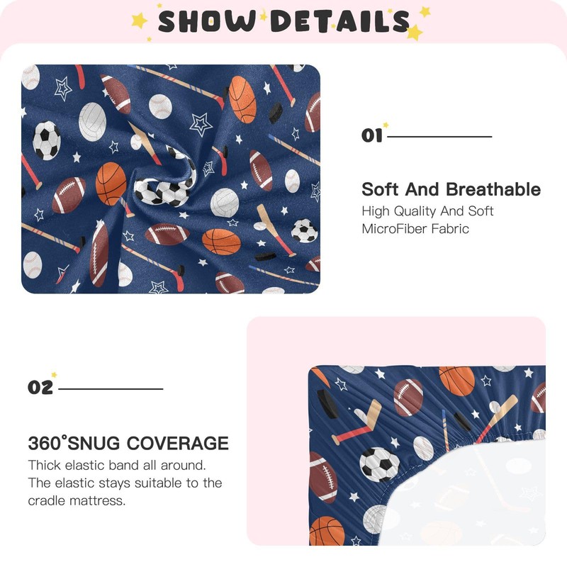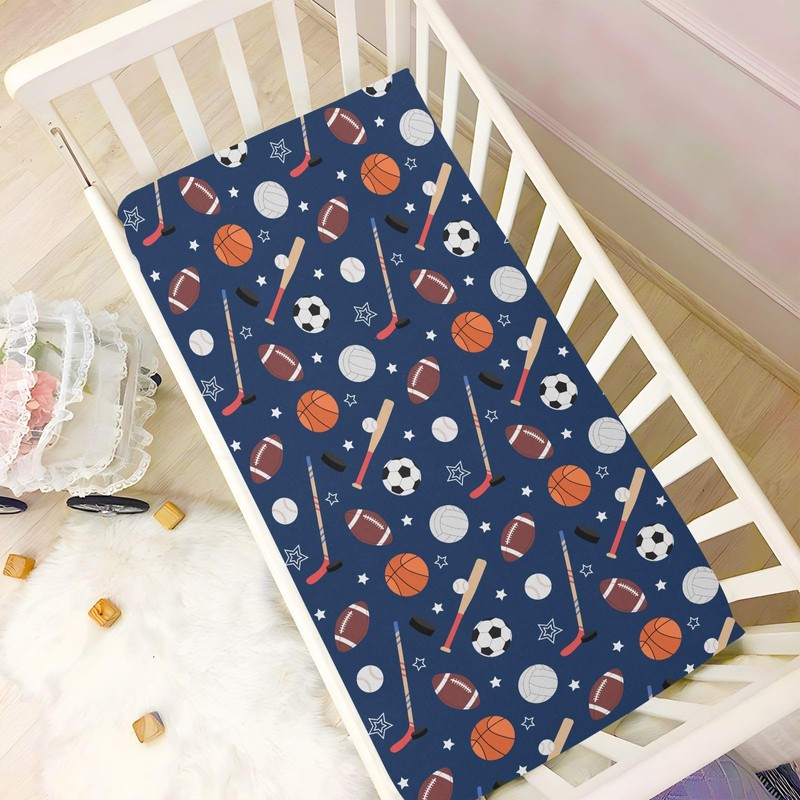 Crib Sheets for Boys Girl Team Sports Breathable Mini Crib Mattress Sheets Fitted,Toddler Baby Sheets for Crib Mattress 39 * 27 * 5In
